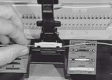 1、手持Fibrlok接线子的两端,将其固定在Fibrlok接续板上。