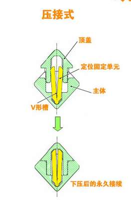 13、压下压接板使接续子的上盖盖紧。