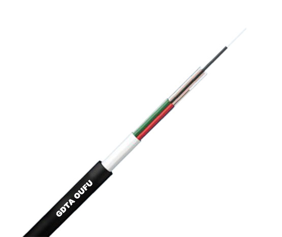 A护套光电混合缆(GDTA)的结构是将单模或多模光纤套入由高模量的聚酯材料做成的松套管中,套管内填充防水化合物。缆芯的中心是一根金属加强芯,对于某些芯数的光缆来说,金属加强芯外还需挤上一层聚乙烯 (PE)。
